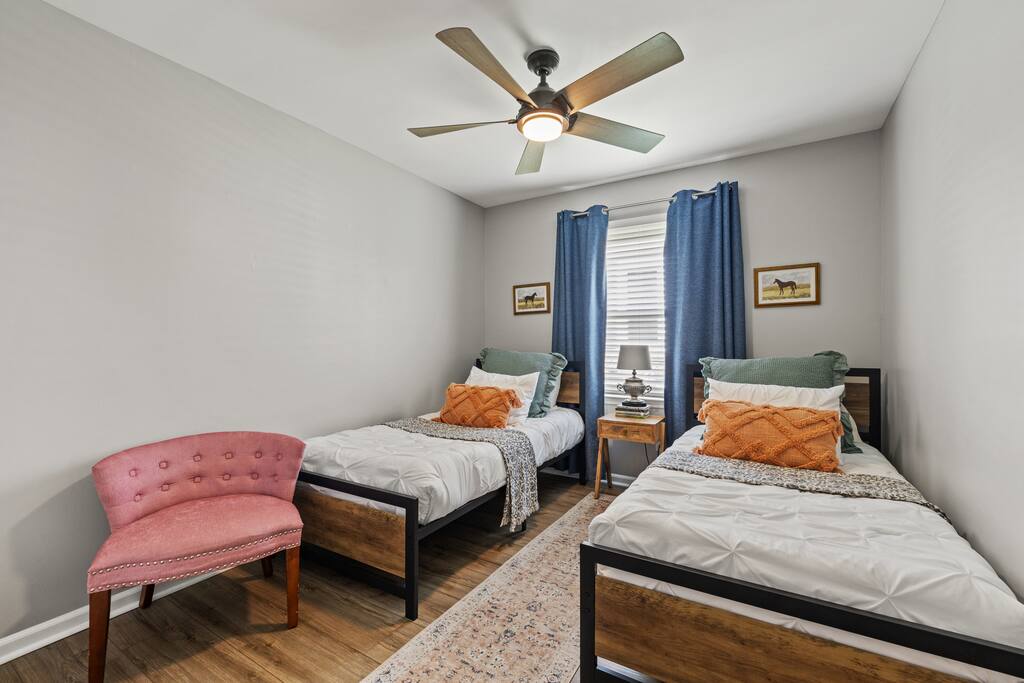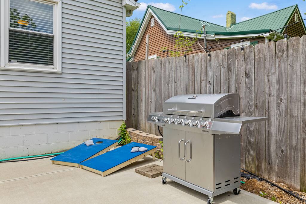 The Layover House is a fully renovated 3 bedroom/2 bathroom home, loaded with every comfort and ammenity any guest could wish for in their stay. Whether its on the cozy couch by the fireplace or enjoying the Kentucky weather on the patio, we aim to make our home your home. Every bedroom is outfitted with a premium mattress, lush bedding, multiple pillow options to match your desired firmness, as well as blackout shades and a fan for hot sleepers. Two of the three bedrooms have 43" smart tvs on swivel wall mounts and dressers in the closets. The Primary bedroom has a King bed and an en suite bathroom, and there is a shared bathroom in the hallway with a shower/tub combination. Shampoo, conditoner and body wash are provided. The kitchen boasts stainless steel appliances, granite countertops and everything a cook could need to put together a memorable dinner. We have pots and pans, a pantry stocked with the basics and a good offering of spices, bakeware, mixer, crockpot, and just about anything else for your time away from home. We have all your bar necessities, cocktail glasses and even have plasticware for outside enjoyment! Our coffe bar with a Kuerig coffee maker, coffee pods and all the necessary condiments helps you start your day bright eyed and ready to go! A full size washer and dryer are available by the kitchen, along with some laundry pods and dryer sheets. There is aso a handheld steamer in the cabinets above the washer. Enjoy the lovely Kentucky weather after a long day at the horse show or on the Bourbon Trail by lounging around the fire pit in our comfy adirondack chairs. Grill up some steaks on our 7 burner grill while your friends and family sit under the patio lights and listen to the peace and quiet of the tiny Georgetown life!